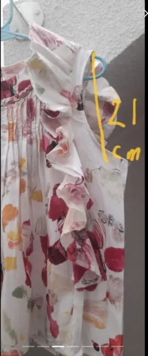 Blusa floreada con olanes, talla S, es de algodón,es nueva,no trae detalle,medidas, hombro a hombro-35, axila a axila-50, largo de la blusa-55.