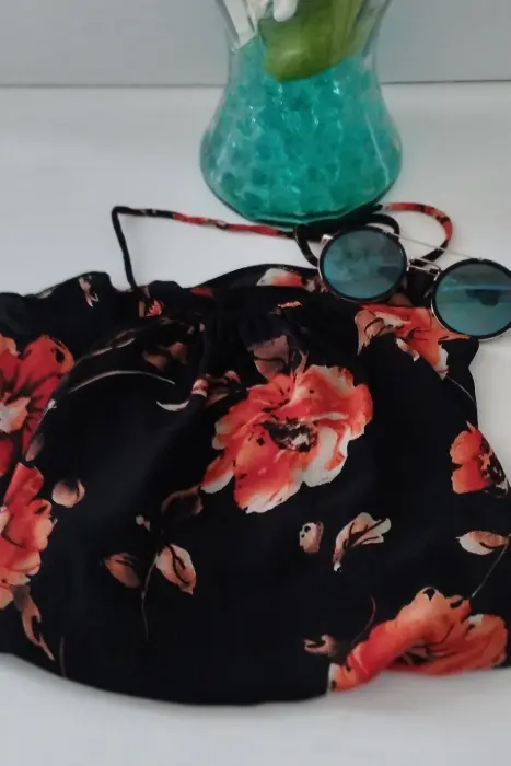Hermosa blusa color n tirantes y espalda destapada floreada súper bonita como nueva puesta una vez ❤️