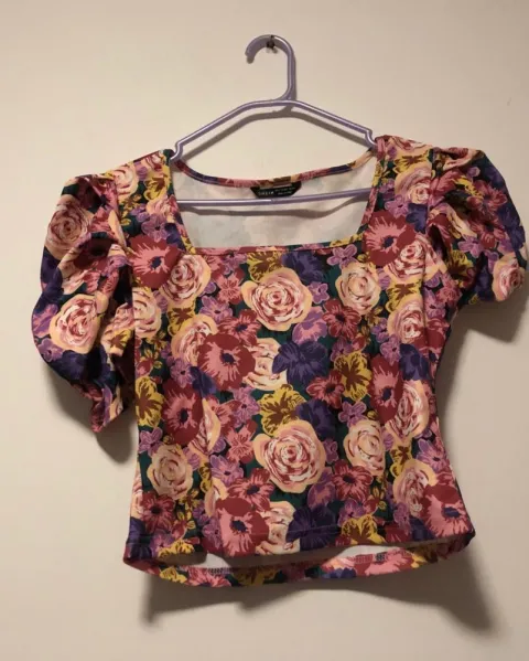 Blusa floreada Shein. Talla grande, manga farol de cuello cuadrado Hombro:36.5cm largo manga:43.25cm Pecho:92cm largo:48.5 cm