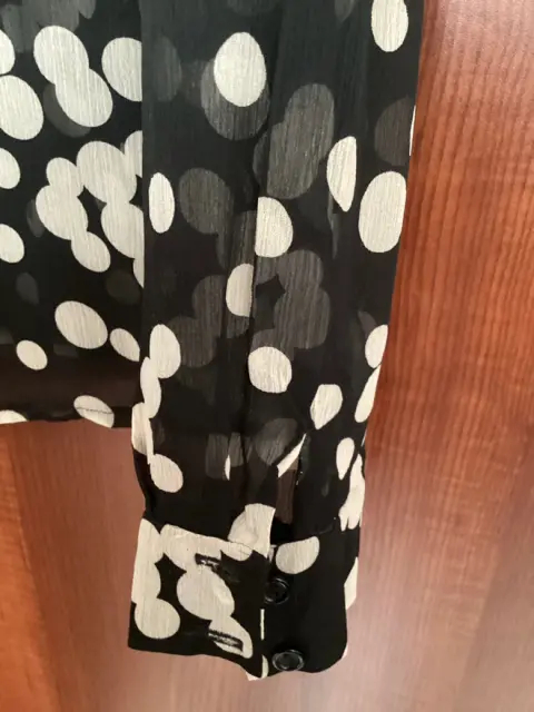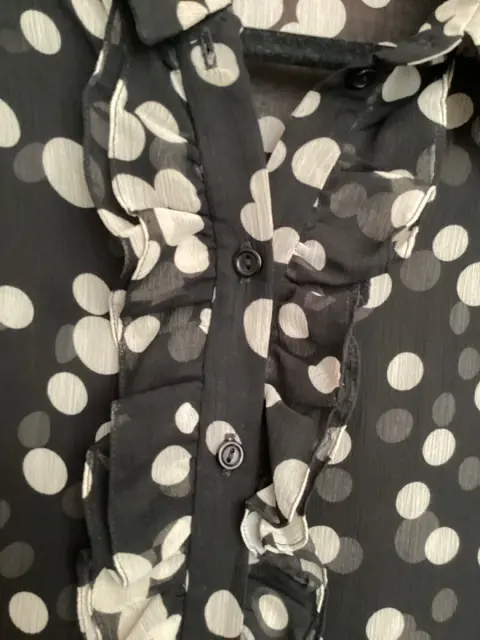 Blusa Foley’s Talla 32/11. Blusa Foley’s Talla 32/11Color negro con círculos gris muy claro. Esta súper linda, elegante y en perfecto estado. Tela transparente. Se uso muy poco. Es tipo formal y de verdad esta preciosa. Tiene olanes en la parte de donde van los botones que se ven muy lindo.