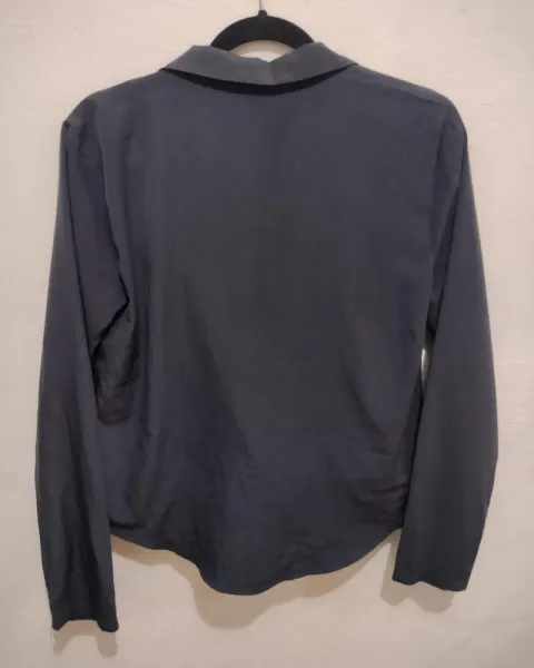 Blusa con detalle arrugad de enfrente y larga de atrás. Es tipo seda y de manga largaMuy padre para tus días de outfit formal o casual.MedidasAxila a axila 50 cmLargo espalda 62 cmLargo frente 50 cm