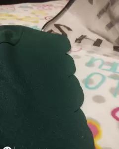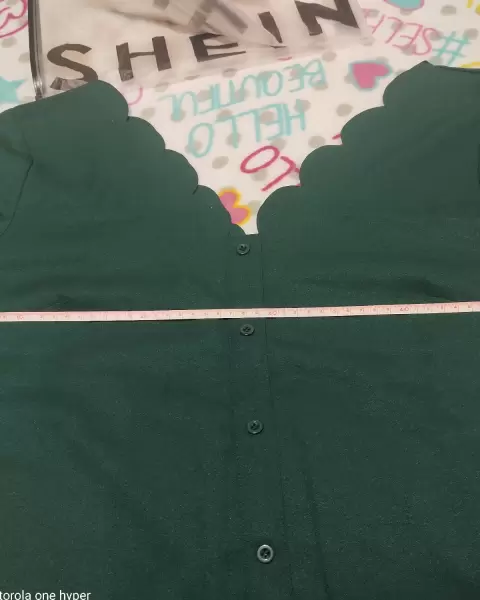 Color verde bandera, cuello en láser en abanico, medida de axila a axila de 55cm. Aproximado. Tela no estira.