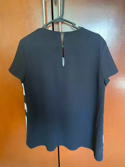 Blusa formal. Blusa manga corta estampado cuadros por el frente, negra al reverso, talla M