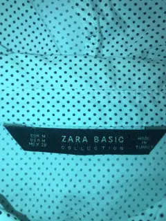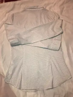 BLUSA MANGA LARGA, BLANCA CON PUNTOS NEGROS. TELA STRETCH, CORTE SLIM, MARCA ZARA, TQLLA 28