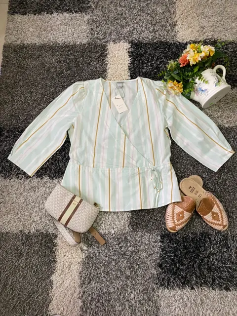 Descripción:❣️ Linda blusa 👚❣️ Casual con tenis y jeans ❣️ Formal con pantalón de vestir y flats ❣️ Manga 3/4 ❣️ Resorte en la cintura para un mejor ajuste ❣️ Nueva con 🏷️❣️ Colores pastel ❣️ Talla M