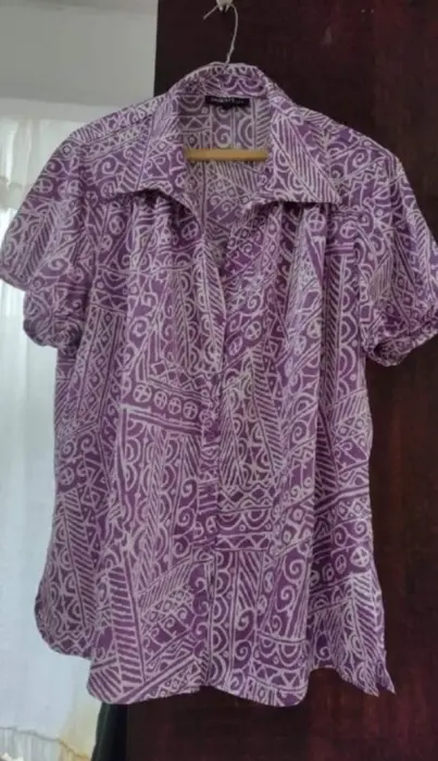 🏵️Blusa formal satinada estampada🏵️Color morado y blanco🏵️Cuello V🏵️Talla 36X🏵️Manga corta con repulgo🏵️Pequeñas aberturas a los lados👉NO ME CIERRO A OFERTAS..! Y realizó el envío lo más rápido posible si te gusta 1 o más prendas te puedo poner todo en el mismo envío😉