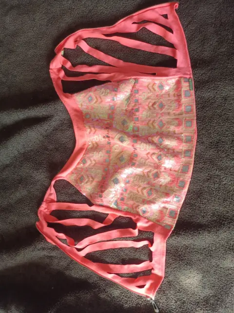Bonita blusa fresca y colores primaverales tiene de frente lentejuelas y por atrás cortes para la espalda.