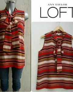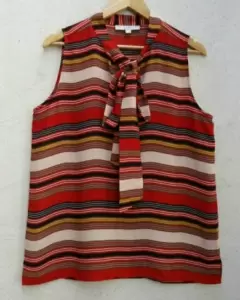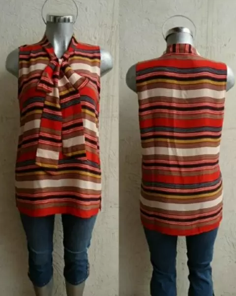 Blusa rayada, ligera de chiffon sin detalles en talla L el moño del cuello se desamarra por completo queda larguita es mas larga de atras la tela es liguera y un poco transparentosa ☆MEDIDAS☆ ziza a ziza 55cm largo delantero 68cm largo trasero 73cm