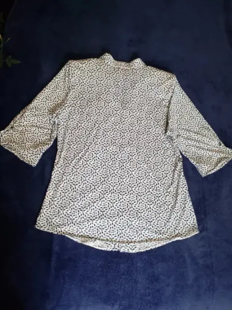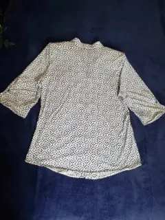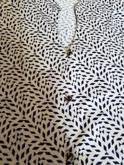 Blusa fresca y formal. Un solo uso, talla 32, poliester, ideal para calores, lycra stretch. Color blanco con tramas azul marino y detalle de botones. Mangas 3/4 con hombreras.