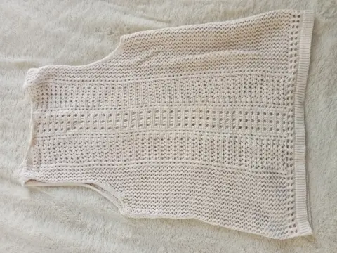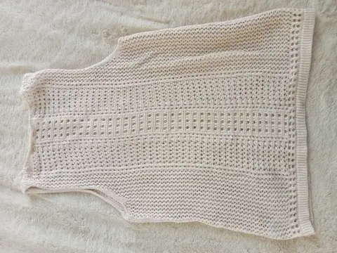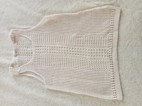 Blusa sin manga de punto, color beige, talla S, puede quedar a una M. 10% algodón.Cuello redondo.