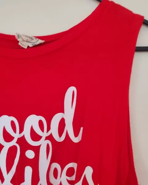 Blusa "good vibes". Moderna blusa sin mangas color rojo frase good vibes en excelente estado