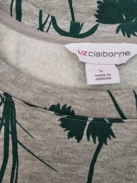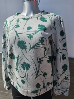 Blusa gris con estampados verdes manga larga. Blusa gris con estampados verdes manga larga, afelpada por dentro, talla grande (L)
