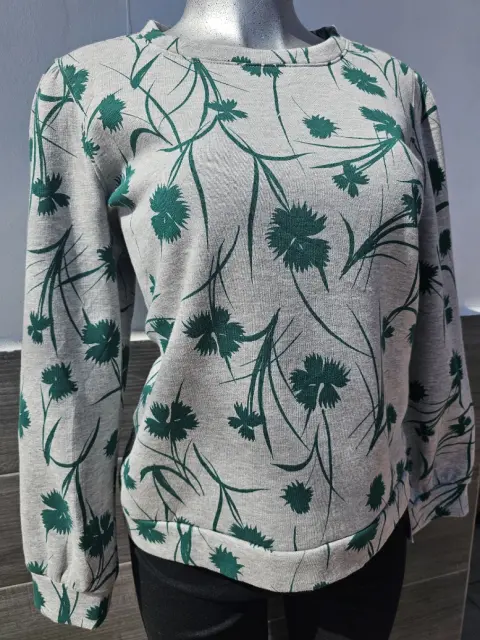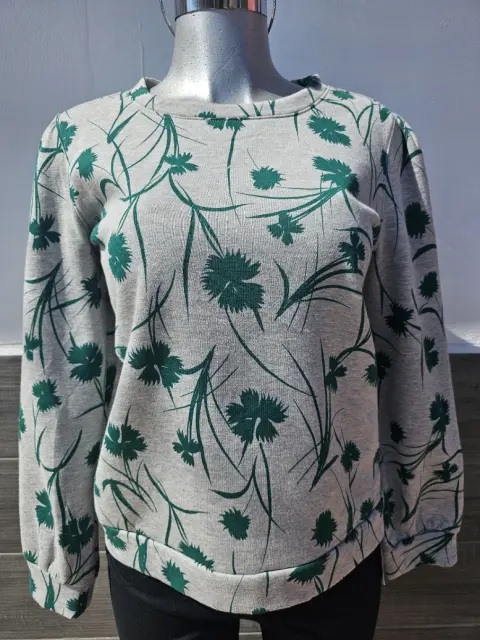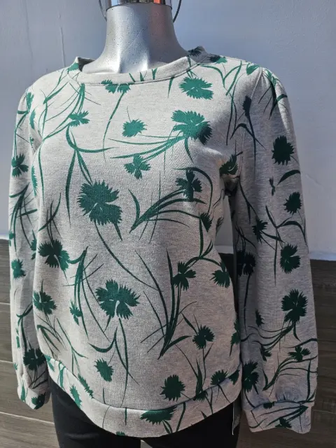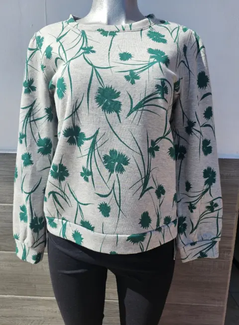 Blusa gris con estampados verdes manga larga