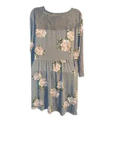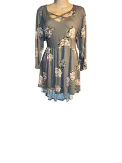 Linda blusa gris floreada súper bonita en perfecto estado bien de talla grande estira las medidas son axila axila 60 cm y de largo 80 también se puede usar como blusón