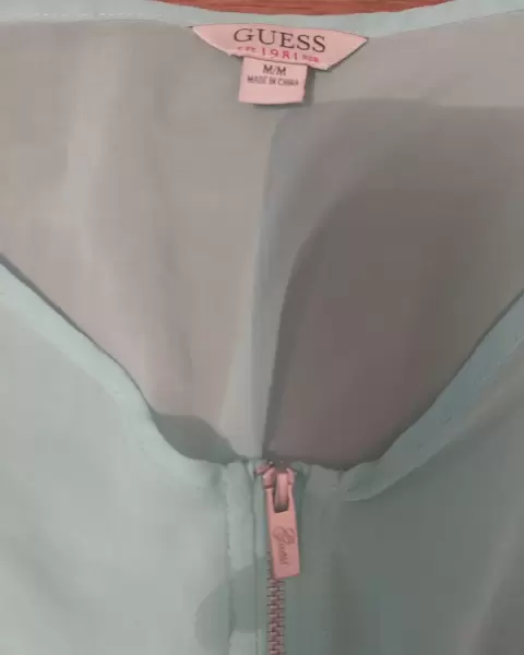 BLUSA GUESS AQUA (L). BLUSA GUESS EN PERFECTAS CONDICIONES SOLO LA USE UNA VEZ, CONVINA CON MUCHOS COLORES Y ES MUY COMODA Y FRESCA ES TALLA L 50 DE PECHO Y 45 DE CINTURA.