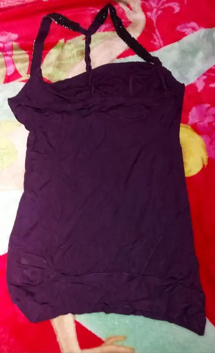 Es unitalla, fresca y cómoda, le da mucha vista la pedrería negra que tiene.