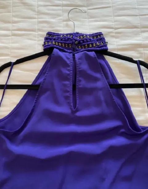 Súper bonita blusa con cuello tipo gargantilla, está preciosa!!! Todos los detalles del cuello completos y en perfecto estado! Solo se usó una vez