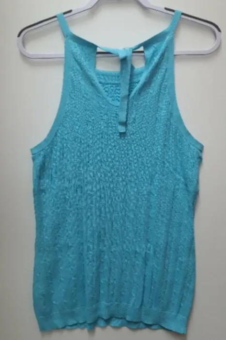 Blusa de punto azul Old Navy tipo halter.El patrón es trenzado.Se amarra en la parte de atrás.Talla M.Medidas aproximadas: 45cm de axila a axila,43cm de largo a partir de axila.*TODAS MIS PRENDAS SE DESINFECTAN CON LYSOLLAVANDERIA PARA TU MAYOR TRANQUILIDAD*