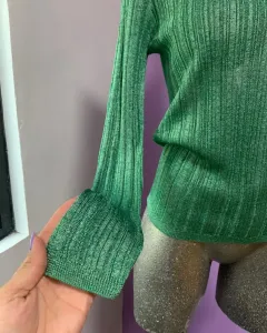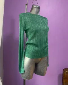 Blusa hilo metalizado. Hermosa blusa de manga larga con hilo metalizado, es talla chica y de la marca mango. Sus medidas son: 60cm de largo, 36cm de axila a axila y 67cm de manga.