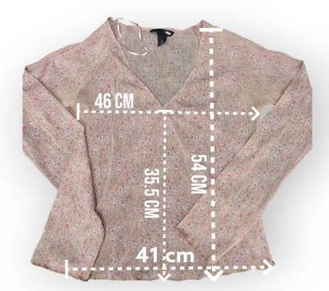 Blusa delgadaLa tela no estiraLa tela se transparentaPuesto solo una vezNo tiene defectosMedidas en la imagen