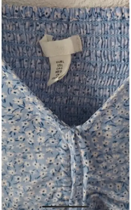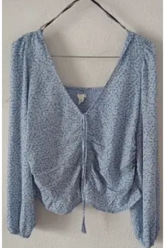 Blusa H&M Drapeada Floreal. Blusa drapeada, llega ala cintura, tela fresca, mangas abombadas. Escote en V. Talla L. Solo la use 1 vez. Medidas: 50 cm axila a axila. Puede estirar un poco más, trae espalda con elástico. 60 cm de largo.