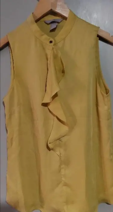 Blusa H&M Mostaza. Blusa color mostaza con detalle de olan y boton, color mostaza.