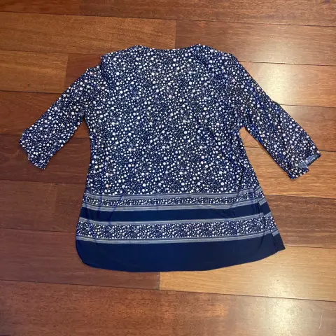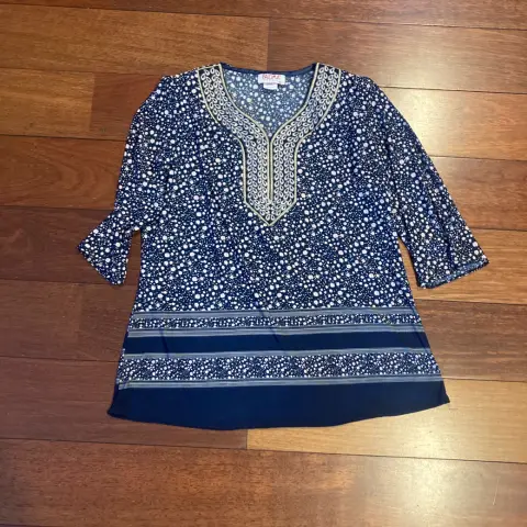 Blusa floral holgada, talla 36, con hermosos detalles bordados al cuello