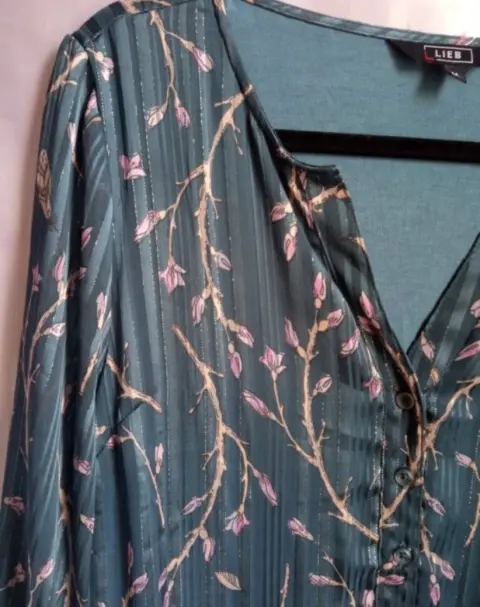 Blusa LIEB holgada, con mangas 3/4, con detalle de hilos plateados en la tela.Talla MMedidas tomadas por un solo lado*Hombros 39 cm*A-A 50 cm*Largo 65 cm