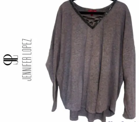 Linda blusa de Jennifer López con cristalitos el color es gris rosadito está nueva en perfecto estado viene amplia talla 2xl pero le queda una talla también 3xl las medidas sonAxila axila 84Largo 66 cm