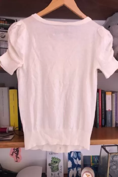 Linda blusa de tela de suéter delgado, la manga es abultada, estás muy linda y ajusta . Mide 23 largo 40 pecho