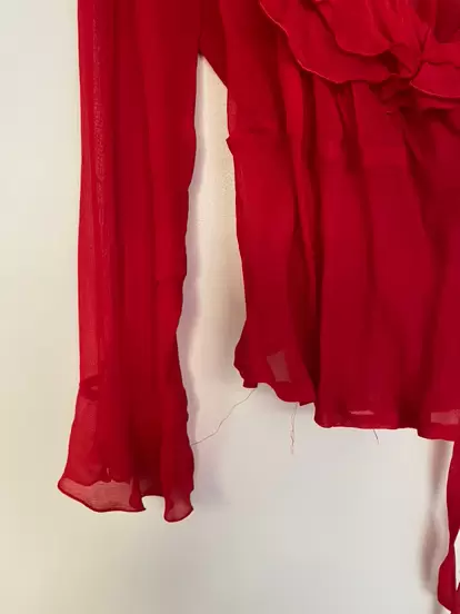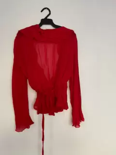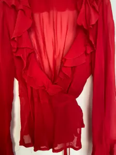 Blusa Julio. Hermosa blusa Julio cruzada, de Gaza con detalles de ola es en cuello y mangas