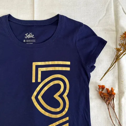Blusa Justice para Niña. •Talla 8 :)•Marca Justice🌈✨•Perfectas condiciones 🫶🏼•Azul marino con estampado en color dorado ⚡️