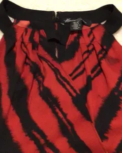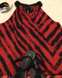Blusa sin mangas cola de pato, roja con franjas rojas. Talla M. En perfecto estado, se uso una vez.