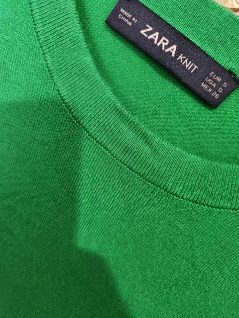 Blusa zara knit, color verde perico. Talla s tela para verano y frío, elastico en mangas y cintura.