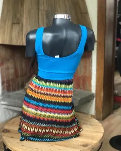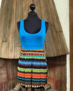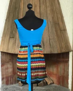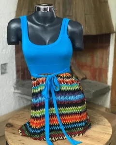 Padrísimo Blu son de algodón talla chica tiene un lacito que lo puedes usar por el frente o atrás viene un poco amplia si puede quedar para alguien mediano es excelente calidad