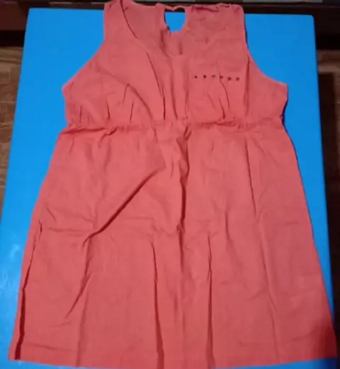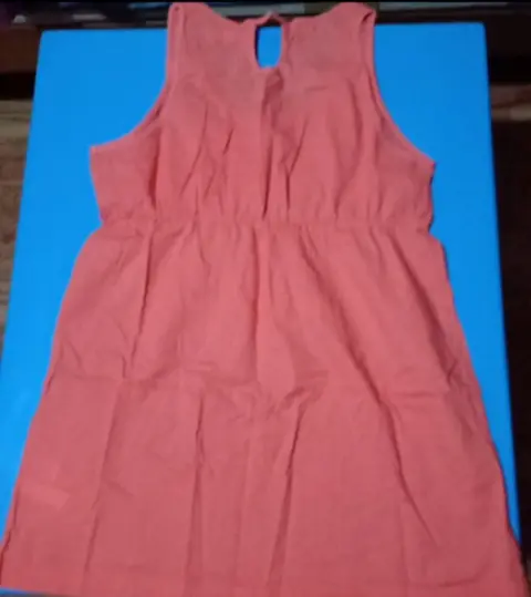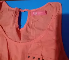 Blusa larga sin mangas, en perfecto estado. Debajo del busto llevaba una cinta de adorno pero ya no cuento con esa cinta, por lo que en la blusa trae dos costuras para colocar las cuales no se notan.