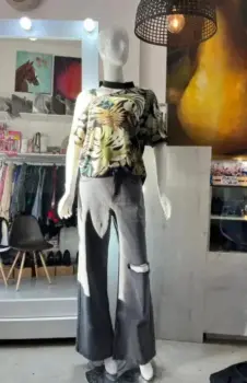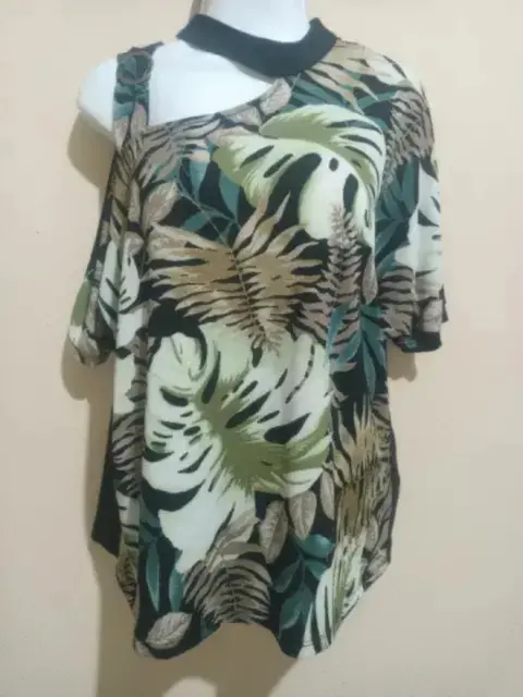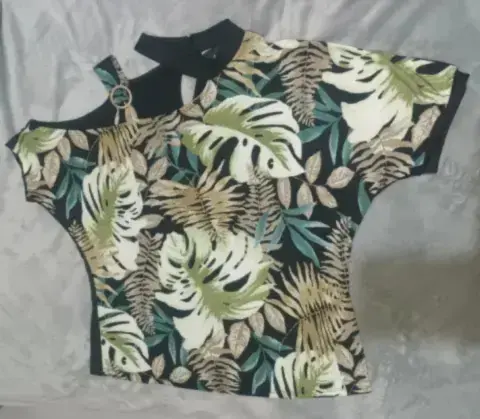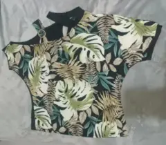 Blusa manga corta con estampado en otoño colores en tonos verdes y detalle en hombro