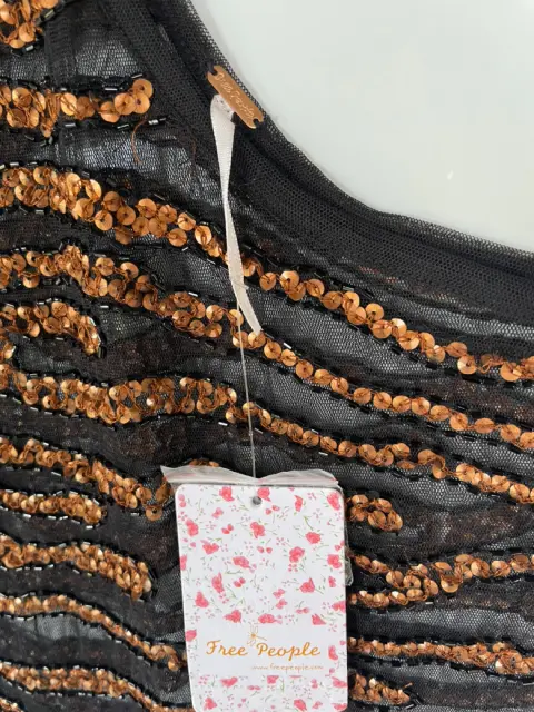 Blusa lentejuela Free People M. Blusa nueva con etiqueta, marca Free People. Talla M color negro con lentejuela en bronce. A un solo hombro. Medidas:Axila a axila: 43 cm Largo: 50 cm
