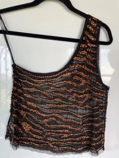 Blusa nueva con etiqueta, marca Free People. Talla M color negro con lentejuela en bronce. A un solo hombro. Medidas:Axila a axila: 43 cm Largo: 50 cm