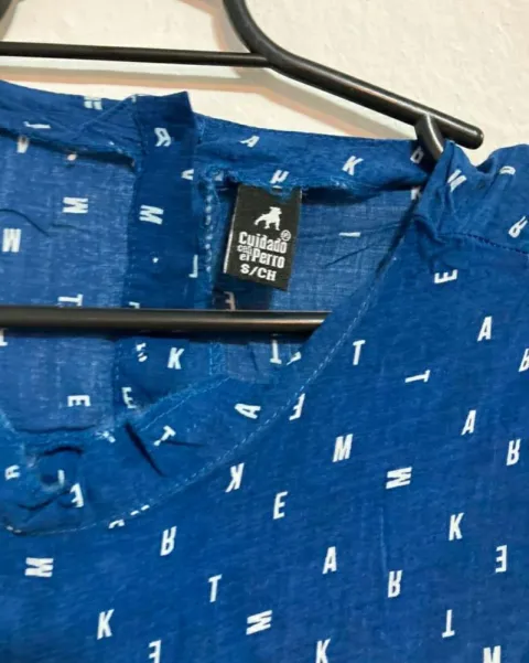 Blusa letras cuidado con el perro. Blusa con estampados de letras, botones en la parte de atrás y en las mangas, manga larga