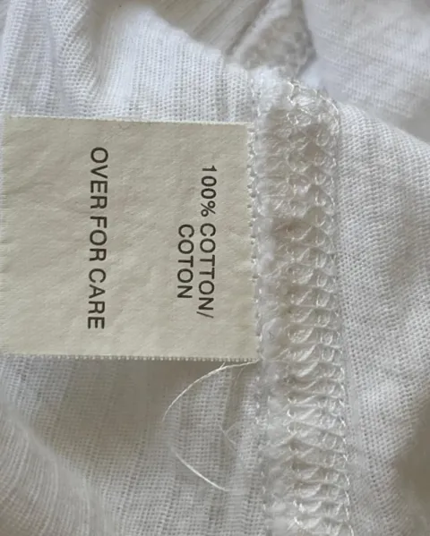 Talla: SMedidas: 38 cm de costura a costura en hombros, 32 cm axila, 25 cm bajo el busto y 59 cm de largo.Blusa blanca de algodón, ligera, corte imperio y escote redondo.