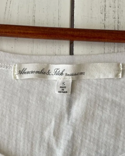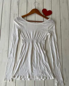 Blusa ligera Abercrombie. Talla: SMedidas: 38 cm de costura a costura en hombros, 32 cm axila, 25 cm bajo el busto y 59 cm de largo.Blusa blanca de algodón, ligera, corte imperio y escote redondo.