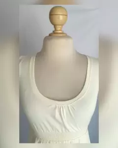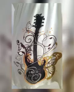 Blusa Ligera corte Évase. Blusa ligera base color MARFIL c/estampado guitarra tonos TIERRA, cuello joya, manga cap y elástico en cintura. Talla G (REDUCIDA, da mejor a M). Dimensiones cms: 33 hombro, 42 axila, 32 cintura (da hasta 42), 57 zona baja, 64 largo, 10 largo manga. 96% algodón, 5% elastano. P/lavado en casa.