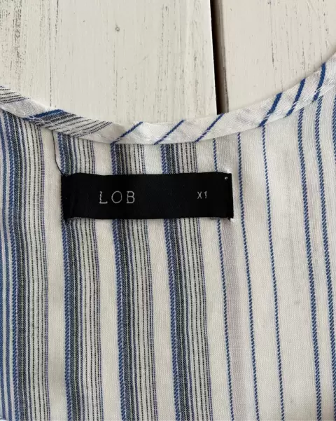 Blusa ligera de tirantes LOB. Blusa fresca muy ligera de tirantes ajustables, que se abotona al frente y no estira. La tela es suave. Base blanca con rayas azules.Talla: X1Medidas: 38.5 cm axila y 46 cm largo sin contar los tirantes.
