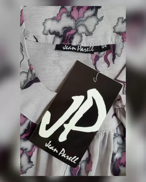 Blusa ligera tipo gasa color GRIS ÁCERO con estampado floral en tonos MORADOS Y GRISES, cuello elíptico, manga 3/4 terminada en campana. Talla 34 (REDUCIDA, da mejor a 32). Dimensiones cms: 38 hombro, 50 axila, 59 zona baja, 70.5 largo, 44.5 largo manga. 100% poliéster. Para lavado en casa.