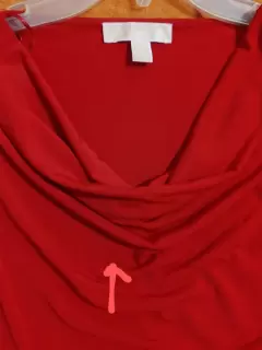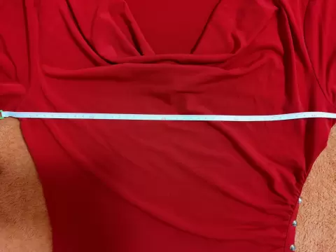 Talla S, 95% poliéster y 5% spandex, se despinto algo al lavar se nota en etiquetas, tiene como un boton oculto colgante para asegurar la caida que se observa del escote, una pequeña mancha que apenas se nota (ver foto).Medidas axila axila 44 cm, parte más estrecha 34 cm, detalle lateral que hace lucir mucho!
