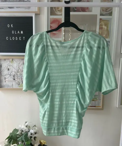Hermosa blusa marca Lob de tela color verde Parral, cuello redondo manga 1/2, la tela es fresca y queda ajustada de la cintura, talla chica
