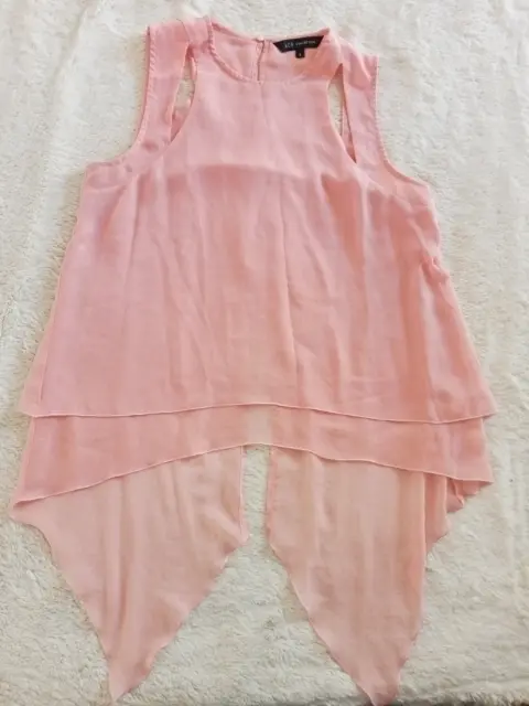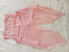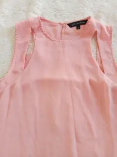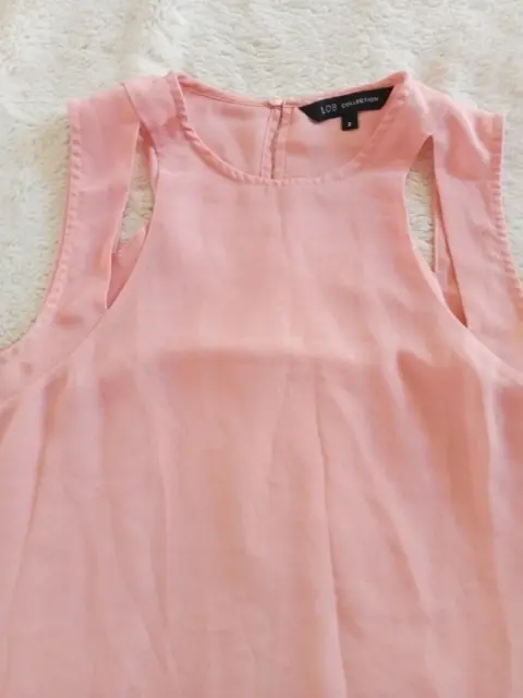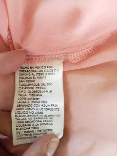 Blusa palo de rosa de cola de pato con abertura hasta media espalda, dos ojillos en la parte superior del pecho. Olanes en los laterales para afinar silueta. Talla 2 marca Lob.