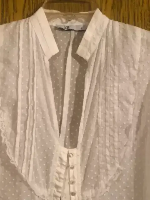Blusa Lob Blanca. Linda blusa blanca con detalles que la hacen lucir , botones y detalles de encaje . Medidas axila a axila 43, cintura 34 y largo 55. La tela no estira .Se uso solo una vez , tiene detalle se jalo de la parte de enfrente se ve en la foto
