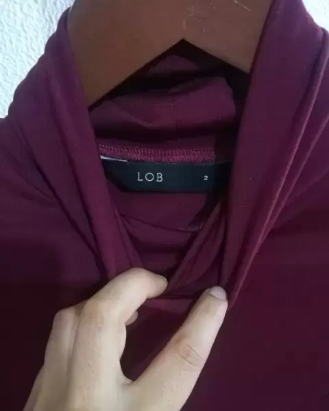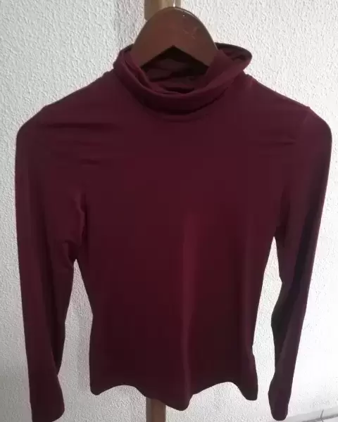 Blusa lob vino. Blusa lob pegadita cuello largo y manga larga